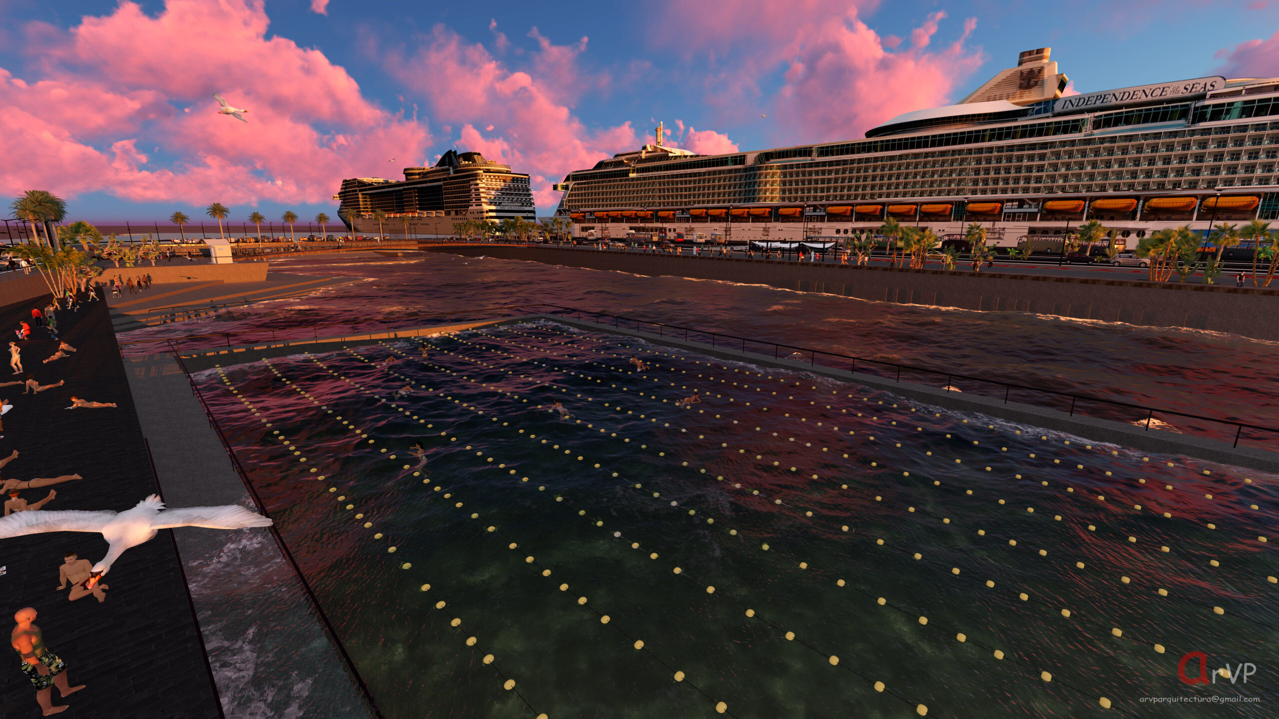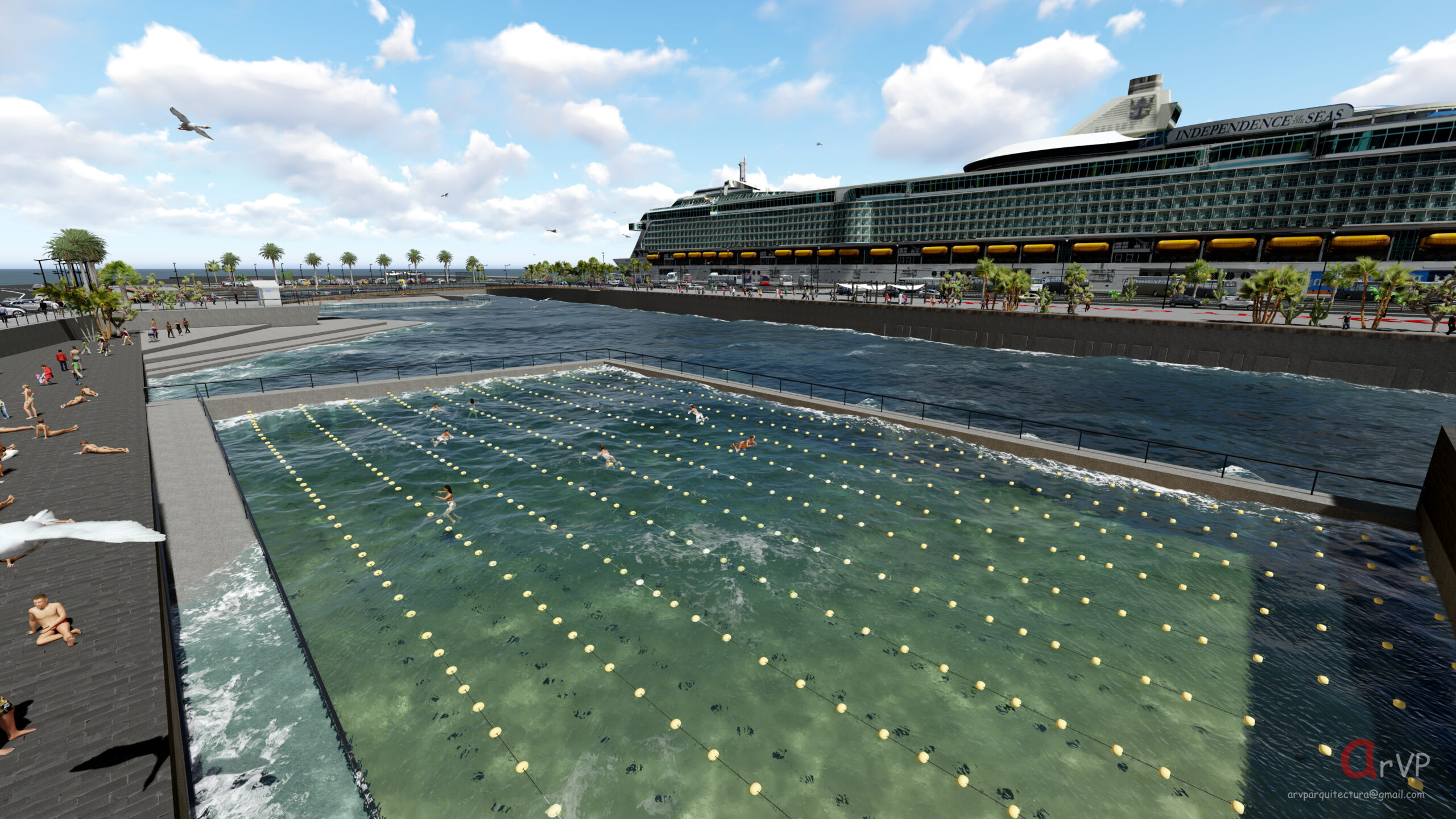 Ampliación del muelle de cruceros del puerto de naos y creación de piscinas naturales.